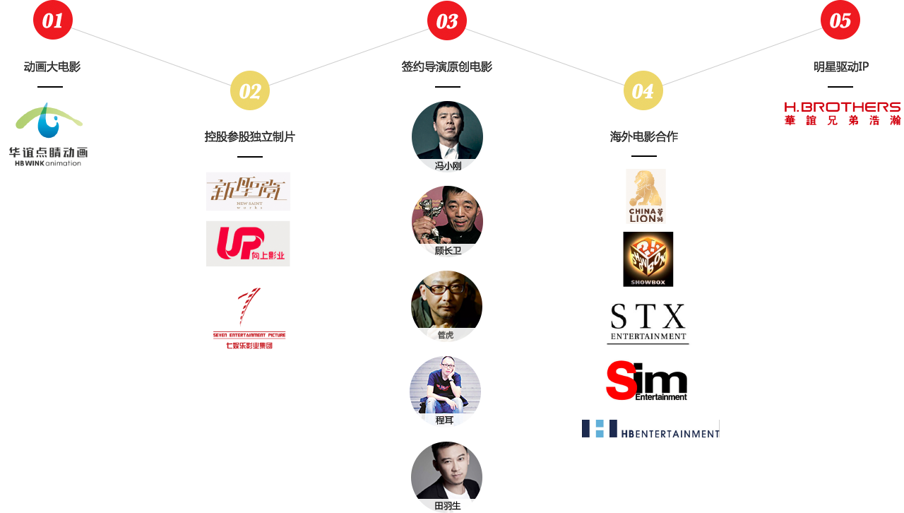 浩瀚娱乐、和记[怡情]娱乐唯一官方网站聚星、东阳美拉和和记[怡情]娱乐唯一官方网站点睛动画等;以及产量、品质都非常稳定的签约导演团队,如冯小刚、管虎、程耳和田羽生等等。